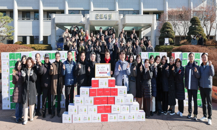[파이낸셜경제=김기보 기자] 군포시는 지난 18일 안양시 동안구에 위치한 새중앙교회로 부터 크리스마스를 맞아 일상생활에서 꼭 필요한 기본 식료품으로 구성한 꾸러미‘사랑의 천사박스’1,004상자를 기탁받았다고 밝혔다.