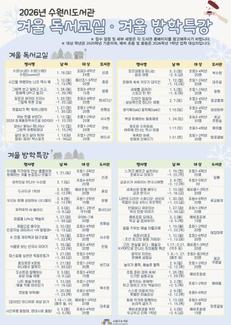| ▲ 수원시도서관 2026년 겨울방학 독서문화프로그램 홍보물 |