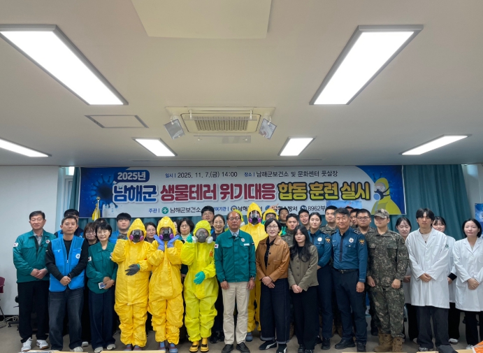 이번 훈련에는 경상남도 감염병관리과, 남해군보건소, 남해경찰서, 남해소방서, 육군8962부대 2대대, 남해군청 재난안전과 등 6개 기관 55명이 참여해 생물테러 발생 시 대응 절차와 유관기관 간 협력체계를 종합적으로 점검했다.