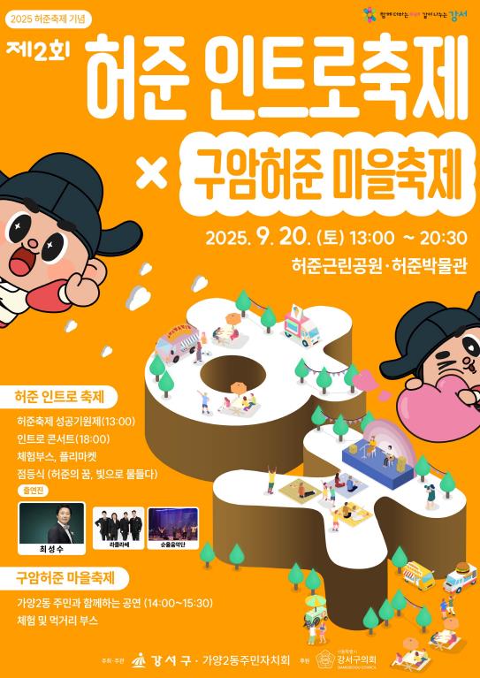 [파이낸셜경제=김예빈 기자] 서울 강서구가 오는 20일 허준근린공원 일대에서 ‘제2회 허준인트로축제 × 구암허준마을축제’를 개최한다.