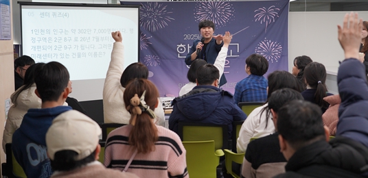 | ▲ 인천시청년미래센터가 지난해 말 마련한 송년모임에서 고립은둔청년들이 퀴즈 프로그램에 참여하고 있다. |