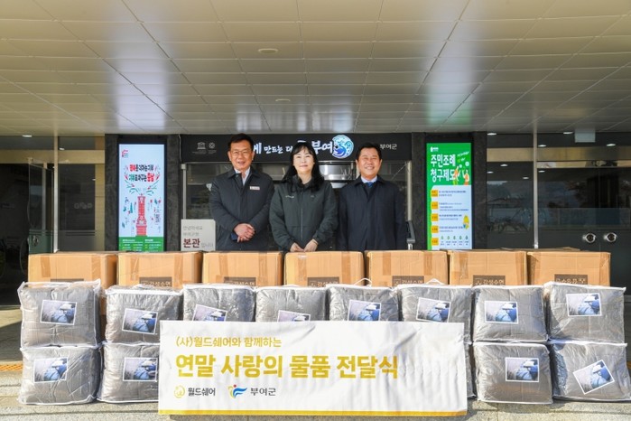 [파이낸셜경제=김영란 기자] 부여군은 지난 18일, (사)월드쉐어(대표 최순자)가 관내 드림스타트 가족 80가구에 겨울용 이불 80개를 전달 했다고 밝혔다.