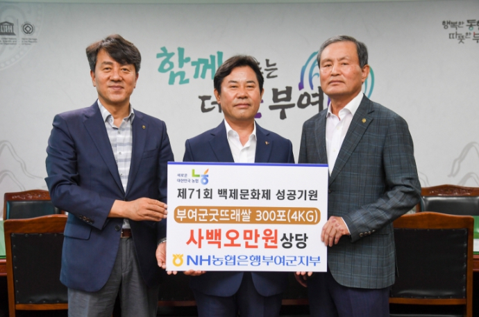 박정현 군수는 “NH농협은행을 비롯해 여러 기관과 군민들의 따뜻한 관심과 성원이 큰 힘이 된다.”라며 “부여의 위대한 역사와 문화를 재조명하는 이번 축제를 군민과 관광객 모두가 함께 즐길 수 있도록 최선을 다해 준비하겠다.”라고 화답했다.