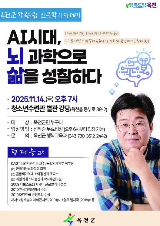 이번 강연은 ‘AI시대, 뇌 과학으로 삶을 성찰하다’ 주제로, AI의 사용이 우리의 일상을 어떻게 변화시키는지 뇌 과학적 관점에서 살펴보는 내용으로 이뤄진다.