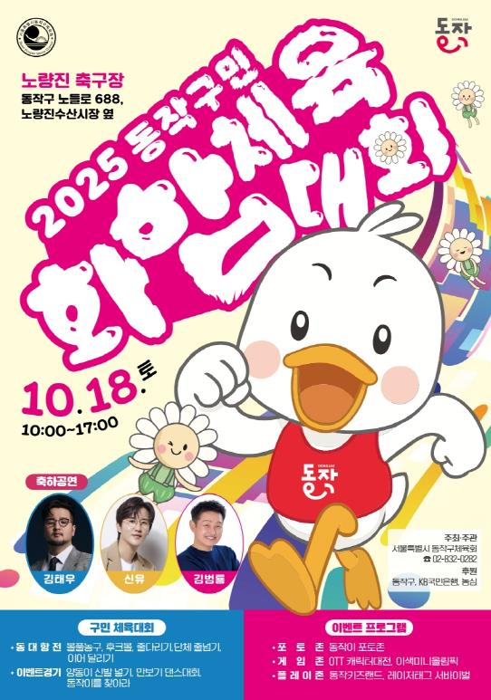 [파이낸셜경제=김예빈 기자] 동작구가 오는 18일 오전 10시 노량진축구장(노들로 688)에서 ‘2025 동작구민 화합 체육대회’를 개최한다고 밝혔다.