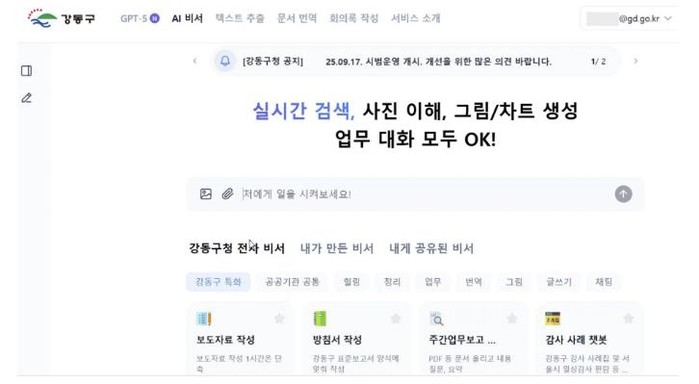 ‘생성형 AI 업무 지원 서비스’는 강동구가 최신 생성형 인공지능(AI) 모델인 GPT-5을 기반으로 다양한 실무에 적용할 수 있도록 구축한 통합 플랫폼이다.