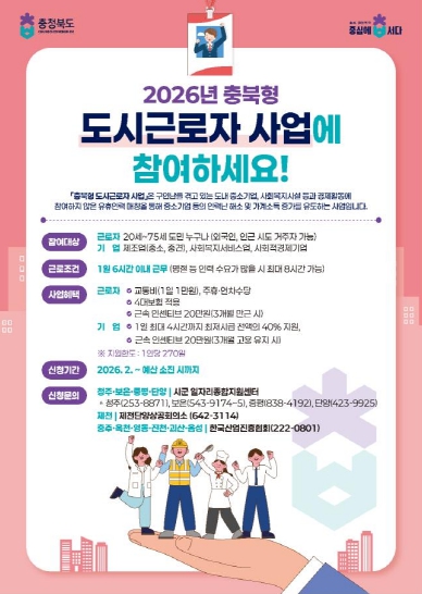 | ▲ 2026년 충북형 도시근로자 지원사업(기업·사회복지시설 맞춤형 안내문) |