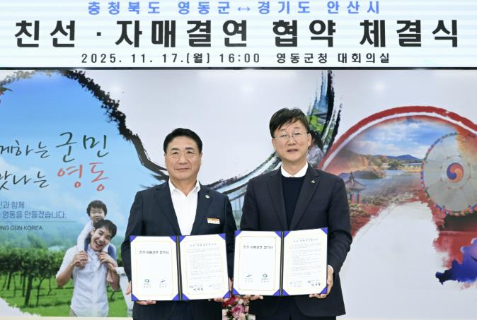 이민근 안산시장은 “해양문화관광도시 안산시와 내륙의 문화도시 영동군이 손을 맞잡은 오늘의 결연은 전통과 현대, 산업과 문화가 함께 성장하는 상생의 시작”이라며 “앞으로도 활발한 교류를 통해 양 지방자치단체가 서로의 장점을 나누고 시민과 군민 모두에게 실질적인 행복을 전할 수 있기를 기대한다”고 말했다.