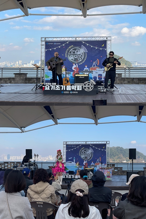 이번 무대에는 인천을 기반으로 활동하는 지역 예술인들이 참여해 ▲요들누나 동혜의 신나는 요들쇼 ▲경인고속도로의 음악과 이야기가 어우러진 힐링 공연 ▲국민 애창 팝송으로 꾸며진 딕훼밀리의 행복콘서트 등 3개 팀의 공연이 각각 이어지며 관람객에게 풍성한 볼거리를 선사했다.