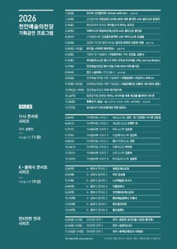 | ▲ 천안예술의전당 2026년 기획공연 일정. |