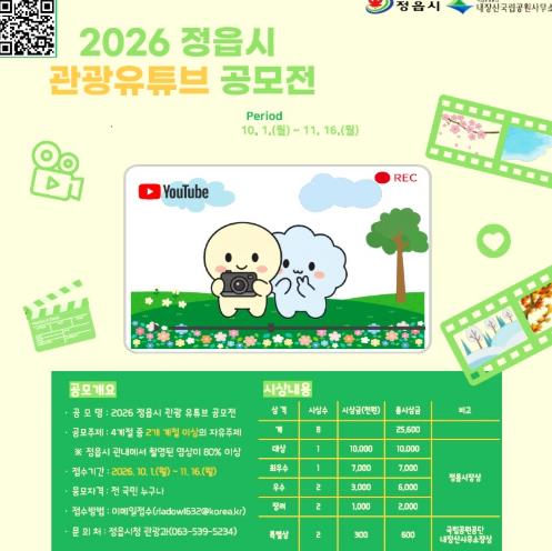 | ▲ "정읍의 사계절을 담아주세요”...2026 관광 유튜브 공모전 개최 |
