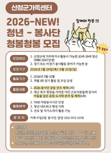 | ▲ 2026년 산청군가족센터 가족봉사단-청년 대상 봉사단 모집 |