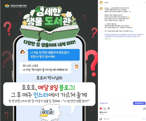| ▲ 우리 섬 우리 생물 이야기 SNS 콘텐츠 화면 |