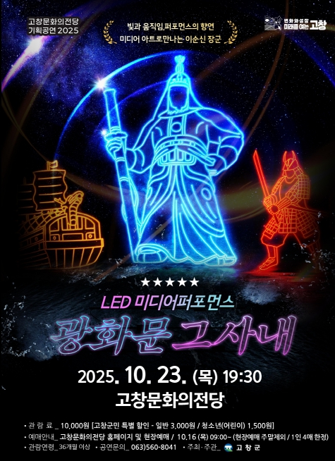 [파이낸셜경제=김예빈 기자] 고창군문화의전당이 오는 23일 저녁 7시30분 ‘LED 미디어 퍼포먼스-광화문, 그 사내’ 공연을 무대에 올린다.
