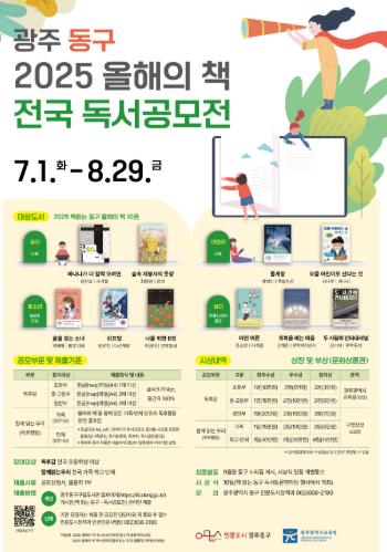 [파이낸셜경제=김예빈 기자] 광주 동구는 책과 함께 소통하며 행복한 인문도시를 조성하고자 2025 ‘올해의 책’ 전국 독서공모전을 개최한다고 밝혔다.