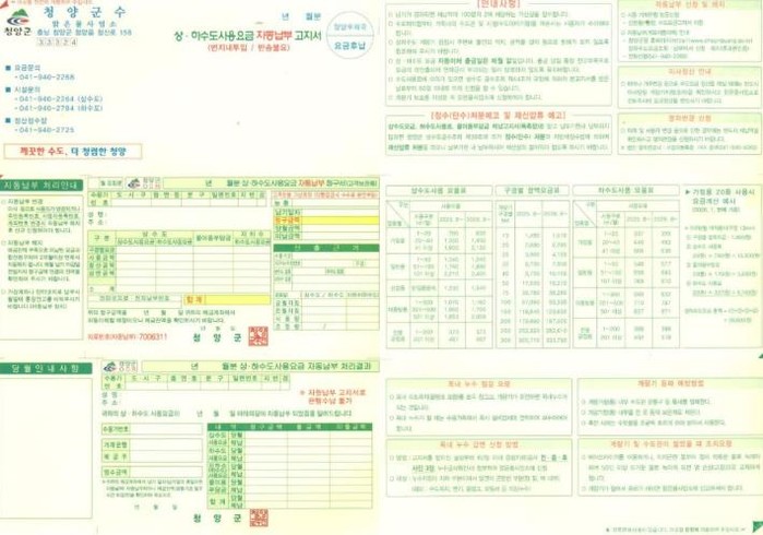 [파이낸셜경제=김영란 기자] 청양군이 군민의 소중한 개인정보를 보호하고 고지서 가독성을 높이기 위해 상·하수도 요금 고지서를 기존 지로형에서 ‘봉합형’으로 전면 개편한다.