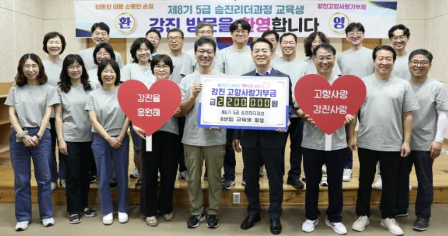강진군은 지난 6일, 지방자치인재개발원 제8기 5급 승진리더과정 8분임 교육생이 교육기간 중 견학 차 강진을 찾아 고향사랑기부금 220만원을 기탁했다고 밝혔다.