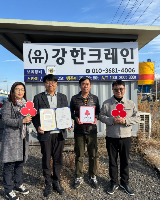 [파이낸셜경제=김예빈 기자] 나운2동 행정복지센터는 착한가게에 신규 가입한 (유)강한크레인(대표 강신재)을 방문하여 착한가게 현판을 전달했다고 13일 밝혔다.