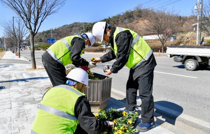 | ▲ 영주시, 상반기 공공일자리사업 참여자 54명 모집(공공일자리사업 참여자들이 꽃길조성을 하고 있다) |