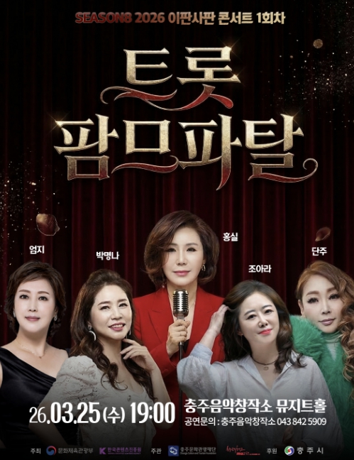 [파이낸셜경제=김기보 기자] 충주음악창작소는 오는 3월 25일 오후 7시 창작소 뮤지트홀에서 2026 음악창작소 프로그램 운영지원 사업 ‘이판사판 콘서트 시즌8’ 1회차 공연 ‘트롯 팜므파탈’을 선보인다.