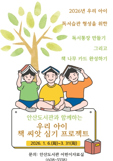 대덕구 안산도서관은 1월 6일부터 3월 31일까지 어린이자료실에서 ‘우리 아이 책 씨앗 심기 프로젝트’를 운영한다고 밝혔다.