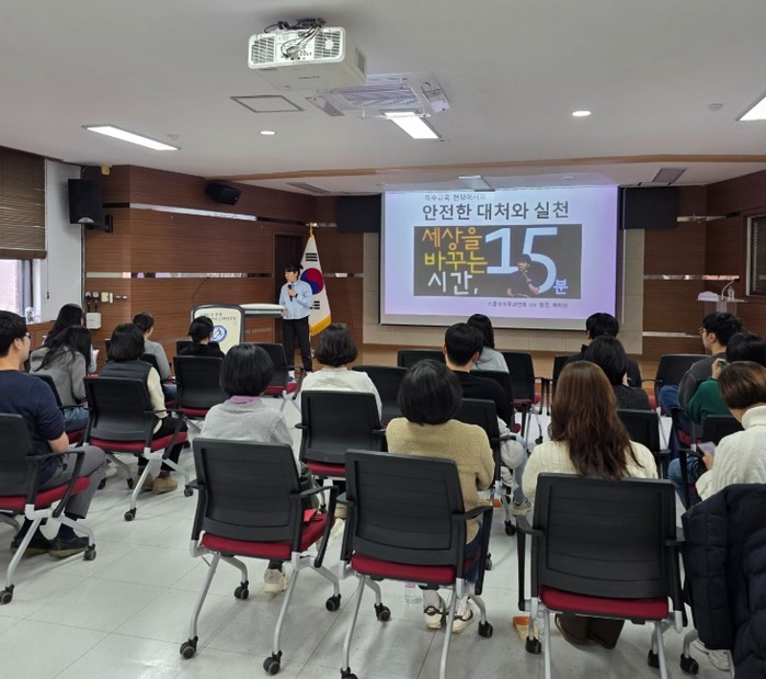 연수는 ▲움직임의 이해 ▲안전하게 대처하는 법 ▲대처를 통한 긍정적 의사소통의 세 가지 주제로 구성됐으며, 교사들이 학교 현장에서 마주하는 다양한 문제상황에 대한 실제적이고 안전한 대응 전략을 함께 모색하는 방식으로 진행됐다.