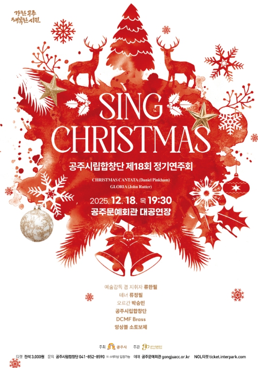 [파이낸셜경제=김영란 기자] 공주시는 오는 12월 18일 저녁 7시 30분 공주문예회관 대공연장에서 공주시립합창단 제18회 정기연주회 ‘Sing Christmas’을 개최한다.