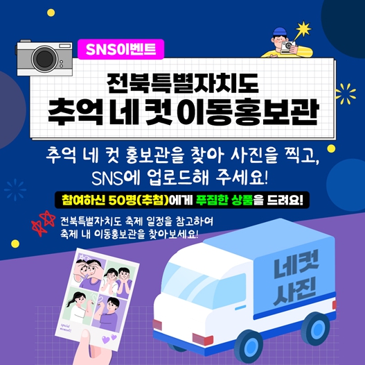 [파이낸셜경제=김예빈 기자] 전북특별자치도는 10월 10일부터 11월 1일까지 도내 주요 축제 현장에서 ‘추억 네 컷 이동홍보관’을 운영한다고 밝혔다.