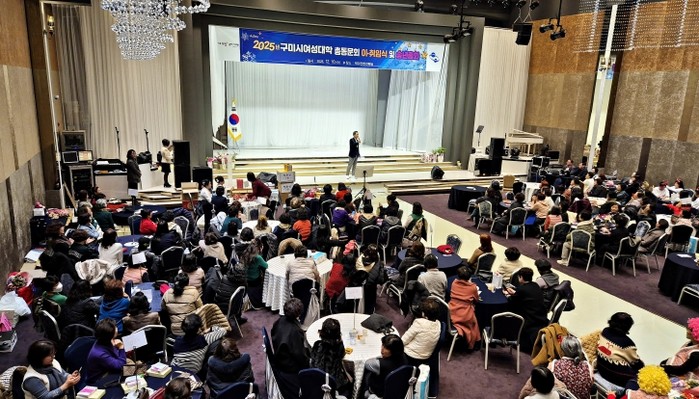 [파이낸셜경제=김지훈 기자] 구미시여성대학 총동문회는 지난 10일 제이컨벤션웨딩에서 총동문회원 200여 명이 참석한 가운데 ‘2025년 회장 이‧취임식 및 총회’를 열었다.
