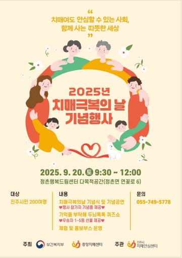 자세한 사항은 진주시치매안심센터로 문의하면 된다.