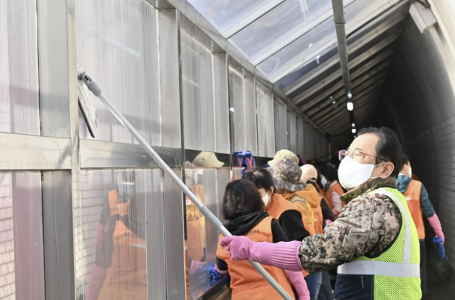 이날 집중 정비가 이뤄진 보행로 칸막이 부스는 지난 2020년 12월 터널 내 차량 배기가스와 소음으로부터 주민들을 보호하기 위해 경기도 특별조정교부금 15억 원이 투입되어 조성된 안전 시설물이다. 시는 이번 대청소를 통해 부스 창 등에 쌓인 찌든 때를 말끔히 제거하며 시민들에게 더욱 쾌적한 보행 공간을 선사했다.