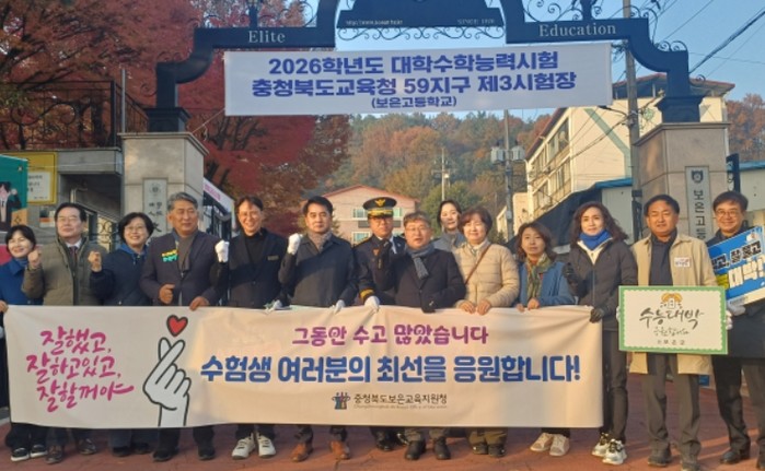이날 행사에는 보은교육지원청을 비롯해 보은군청, 보은경찰서 등 지역 유관기관 관계자들이 함께 참여하여 시험장으로 향하는 수험생들에게 응원의 메시지와 따뜻한 격려 인사를 전했다.