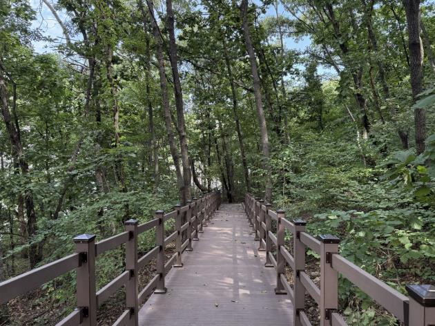 데크로드는 총 연장 1,042m, 경사도 8% 이하의 무장애 구조로 조성돼 휠체어·유모차 이용자도 무리 없이 이동할 수 있으며, 황산숲을 한층 더 편리하게 즐길 수 있는 환경이 마련될 것으로 기대된다.