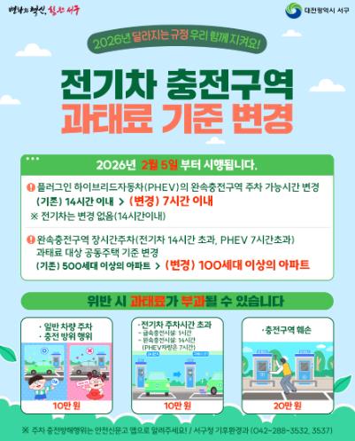 | ▲ 대전 서구 전기차 충전 구역 과태료 부과 기준 변경 안내 홍보물 |