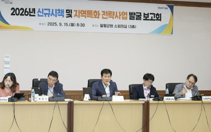 [파이낸셜경제=김예빈 기자] 전남 함평군이 미래 성장동력을 확보하기 위해 ‘2026년 신규 시책 및 지역특화 전략사업 발굴 보고회’를 열고 총 156건의 사업을 점검했다.