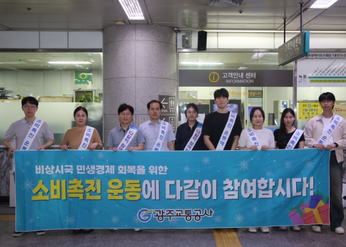 [파이낸셜경제=김예빈 기자] 광주교통공사는 최근 광주시 서구 상무역에서 도시철도 이용객을 대상으로 ‘민생 경제 회복을 위한 소비 촉진 캠페인’을 펼치고, 광주시 공공배달앱 사용 독려, 전통시장 등 소상공인 상점 소개 등 지역 소비 활성화를 위한 다양한 홍보 활동을 추진했다.