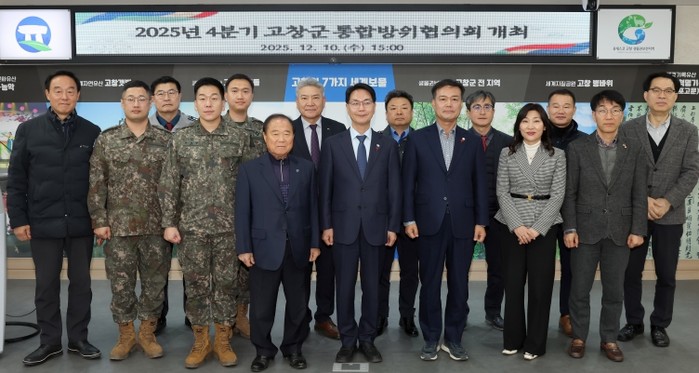 [파이낸셜경제=김예빈 기자] 고창군이 지난 10일 군청 2층 회의실에서 ‘2025년 4분기 통합방위협의회’를 열고, 2025년 운영성과와 2026년 운영계획을 보고하고 2026년 민방위 실시계획을 심의했다.