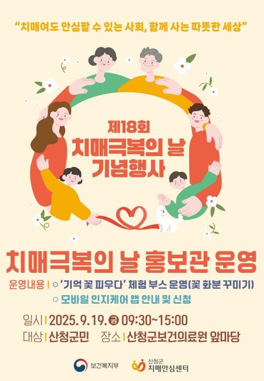 또 19일에는 산청군보건의료원 앞마당에서‘기억 꽃 피우다’라는 주제로 치매예방 홍보관을 연다.