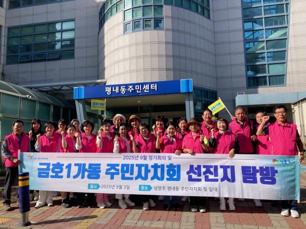 금호1가동 주민자치회 지준환 회장은 “남양주 평내동 방문으로 다른 환경 속 주민자치회 사업 운영을 직접 살펴보며 배울 점이 많았다”며 “더 나은 금호1가동을 만들기 위한 동기부여가 됐으며, 의제 발굴과 마을사업 수행에도 충실히 임하겠다”고 말했다.