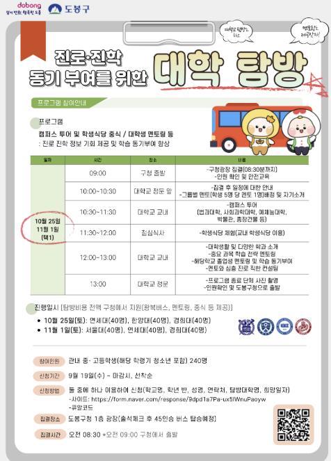 | ▲ 도봉구 대학탐방 홍보 포스터 |