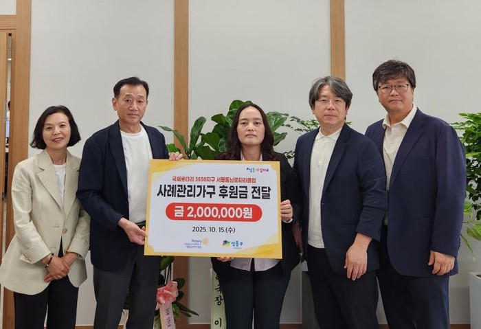 [파이낸셜경제=김예빈 기자] 서울 성동구는 지난 15일 서울동남로타리클럽으로부터 저소득 통합사례관리 가구 및 자립준비청년 지원을 위한 후원금으로 총 300만 원을 기부받았다.