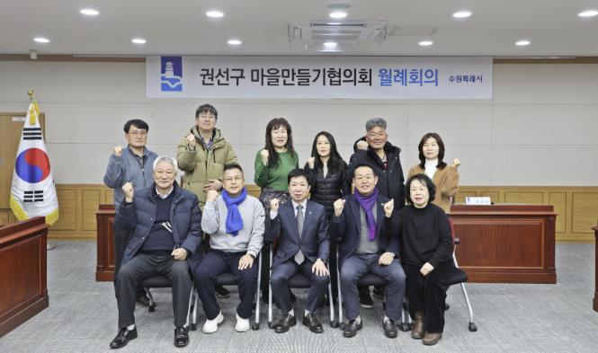 회의에 함께한 고호 권선구청장은 “주민의 목소리를 직접 듣고 마을의 변화를 이끌어가는 마을만들기협의회의 열정에 박수를 보낸다”며, “2026년에도 주민들이 체감할 수 있는 살기 좋은 권선구를 만들기 위해 협의회의 창의적인 아이디어와 활동을 적극 지원하겠다”라고 밝혔다.
