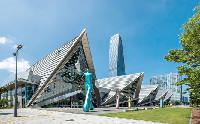 | ▲ 인천 송도국제도시 중심부에 자리한 송도컨벤시아 전경. 2025년에 SOM III를 포함 총 1,033건의 행사 개최, 방문객 106만 명으로 역대 최고 실적을 냈다. |