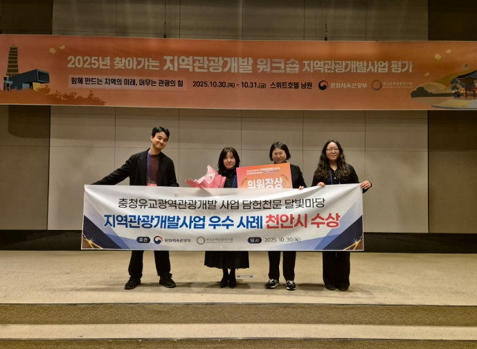 [파이낸셜경제=김영란 기자] 천안시는 문화체육관광부와 한국문화관광연구원 주관의 2025년 찾아가는 지역관광개발 워크숍 지역관광개발사업 평가에서 ‘담헌천문·달빛마당’ 건립 사업이 우수사례 지자체로 선정돼 위원장상을 수상했다고 3일 밝혔다.
