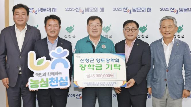 [파이낸셜경제=김예빈 기자] 산청군은 NH농협산청군지부, 산청군농협, 함양산청축협, 산청군산림조합이 향토장학금 4500만원을 기탁했다고 18일 밝혔다.