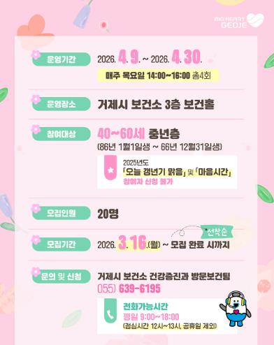 | ▲ 거제시보건소,『다시 봄, 갱년기 한방케어』 참여자 모집 |