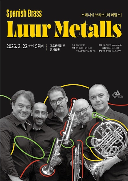[파이낸셜경제=김기보 기자] 아트센터인천은 오는 3월 22일 오후 5시, 세계적인 금관 5중주단‘스페니쉬 브라스 러 메탈스’의 공연을 콘서트홀에서 개최한다. 1989년 창단 이후 35년 넘게 국제무대에서 독보적인 입지를 구축해 온 이들은 이번 공연에서 정교한 앙상블과 강렬한 에너지로 금관 음악의 진수를 선보일 예정이다.