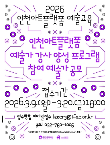 [파이낸셜경제=김기보 기자] (재)인천문화재단에서 운영하는 인천아트플랫폼은 예술가의 창작 역량을 기반으로 예술교육 전문 인력을 양성하기 위해 2026년부터 〈예술가 강사 양성 프로그램〉을 새롭게 운영한다.