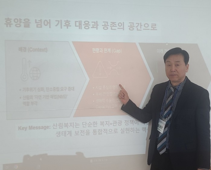 | ▲ 양세훈 박사, 환경 가치 실현의 핵심 수단으로 산림복지 전환 전략 필요 |