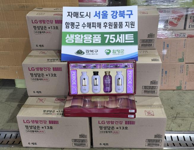 함평군은 12일 “서울특별시 강북구청(구청장 이순희)이 지난 11일 150만 원 상당의 수해 지원 물품을 전달했다”고 밝혔다.